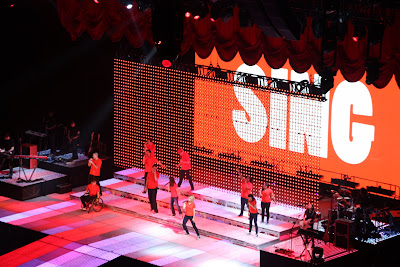 So the other night I started talking about my trip to the O2 to watch Glee. We got to our seats around 7.15pm, nothing happened until 8pm where we had dancers come on stage. Glee has two brilliant dancers, Britney and Mike, and I thought it was them. Instead it was their supporting act.
